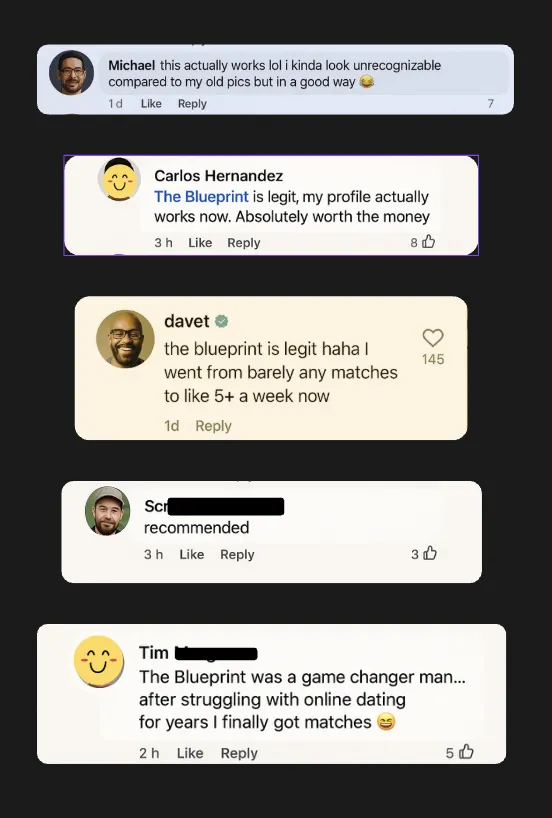 It was designed by real women who’ve spent years on dating apps and surveys of over 1,000 women — studying what actually makes women stop, swipe right, and respond.